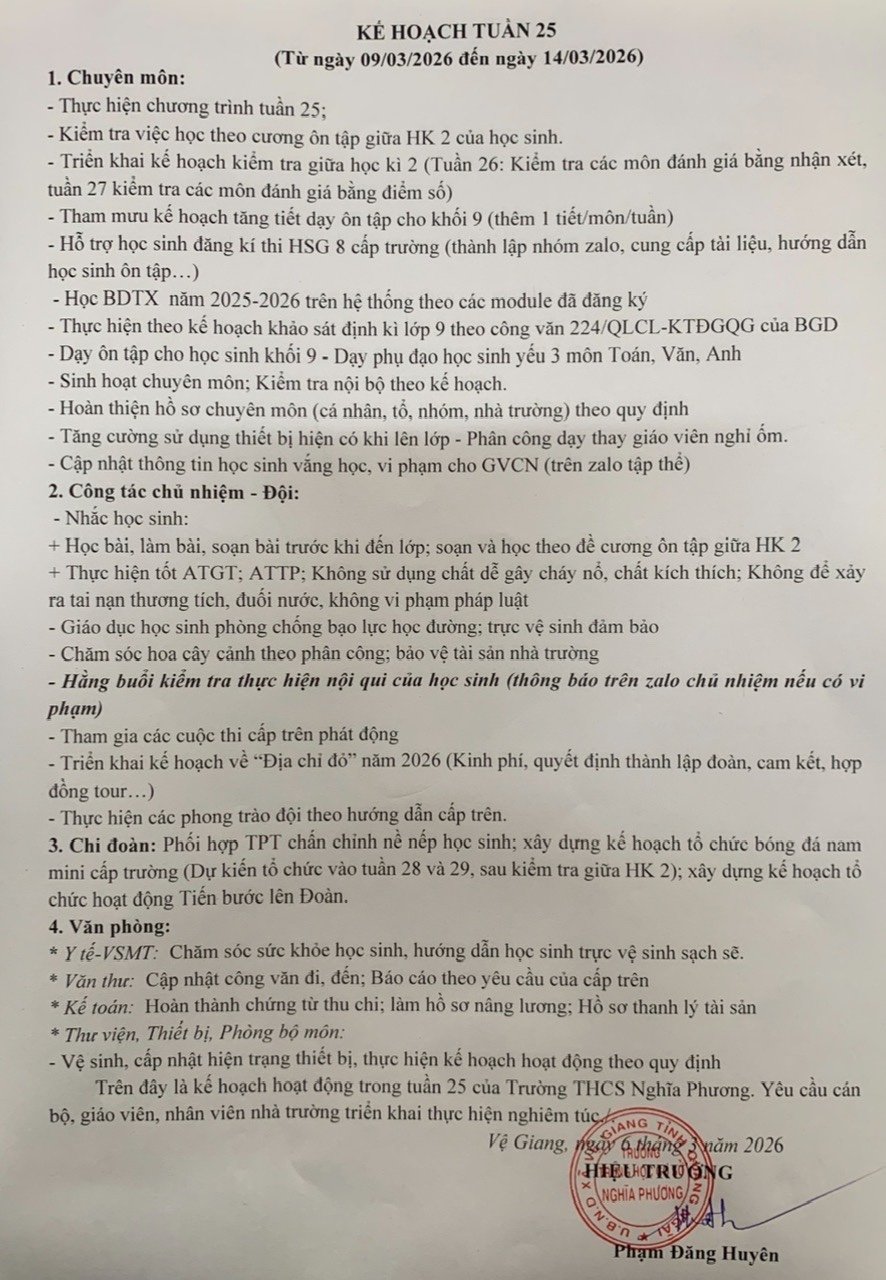 Kế hoạch tuần 25