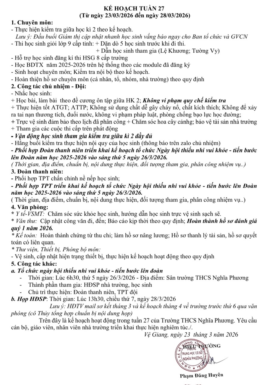 Kế hoạch tuần 27